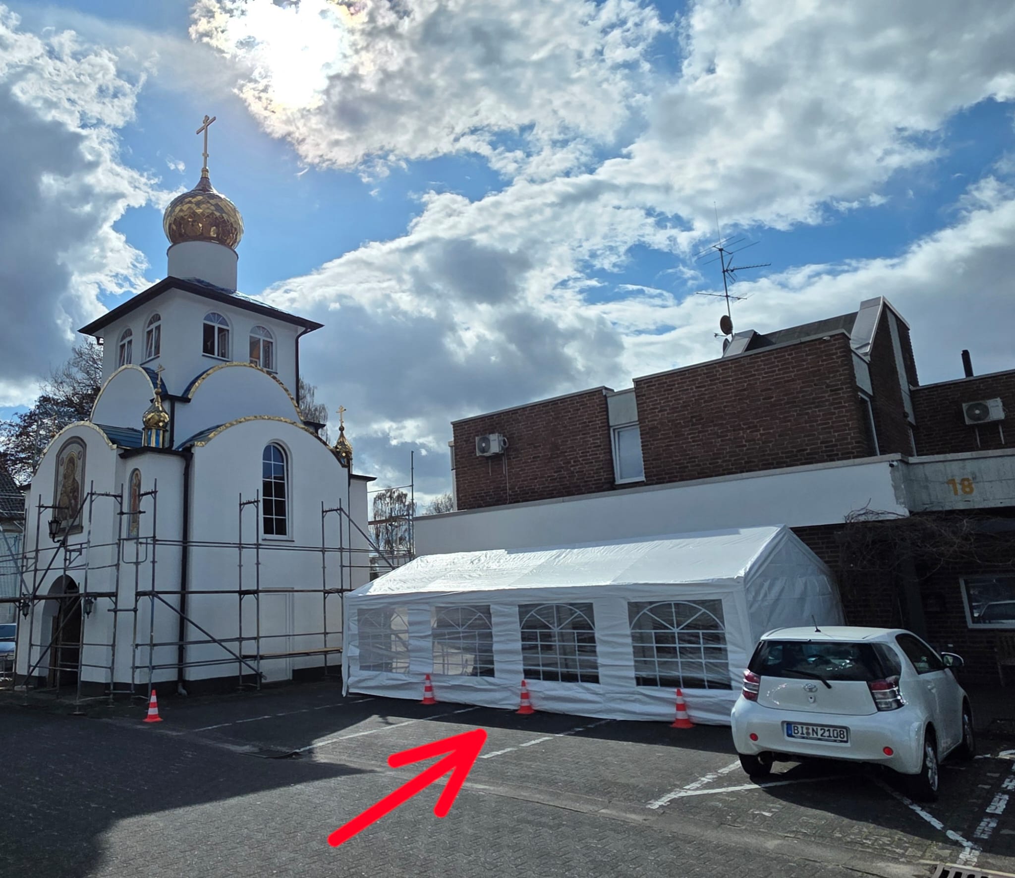 Те, кто припаркуется на ALDI, "Berg Spanntechnik" и стадионе - могут принести и оставить куличи в палатке у храма.