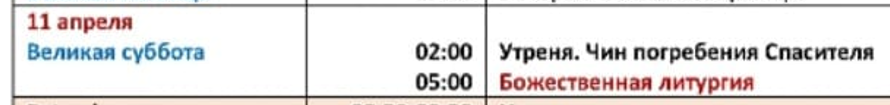 В расписании имеются дополнения: в Великую субботу, после Чина погребения, состоится ранняя Божественная литургия в 05:00 утра.
