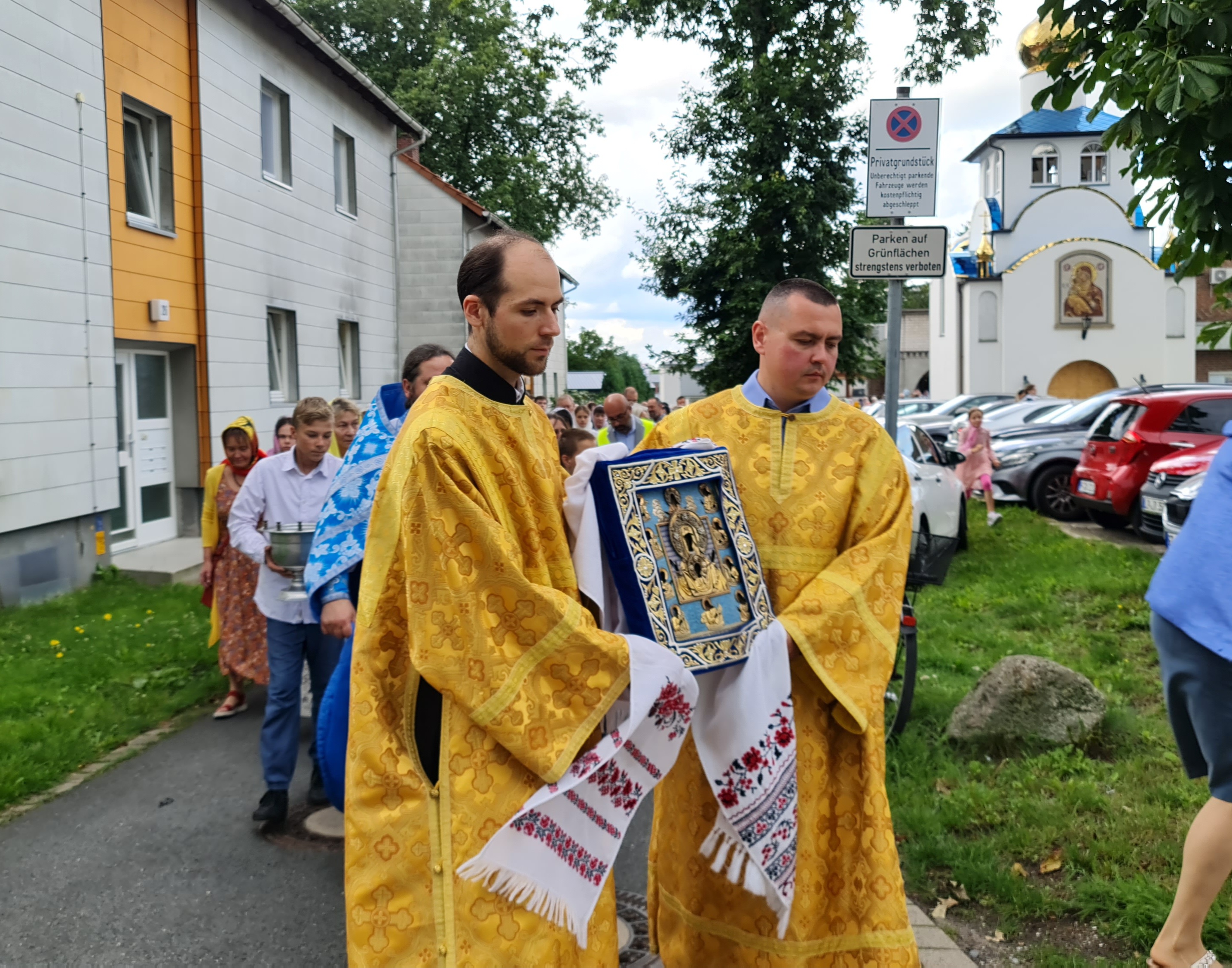 В субботу, 05 августа 2023, на приход "Спасо- Преображенского" храма в г.Билефельд, настоятелем, о.Димитрием, была привезена икона Богородицы " Курская - Коренная". Вечером, того же дня икона находилась на Всенощном бдении.
